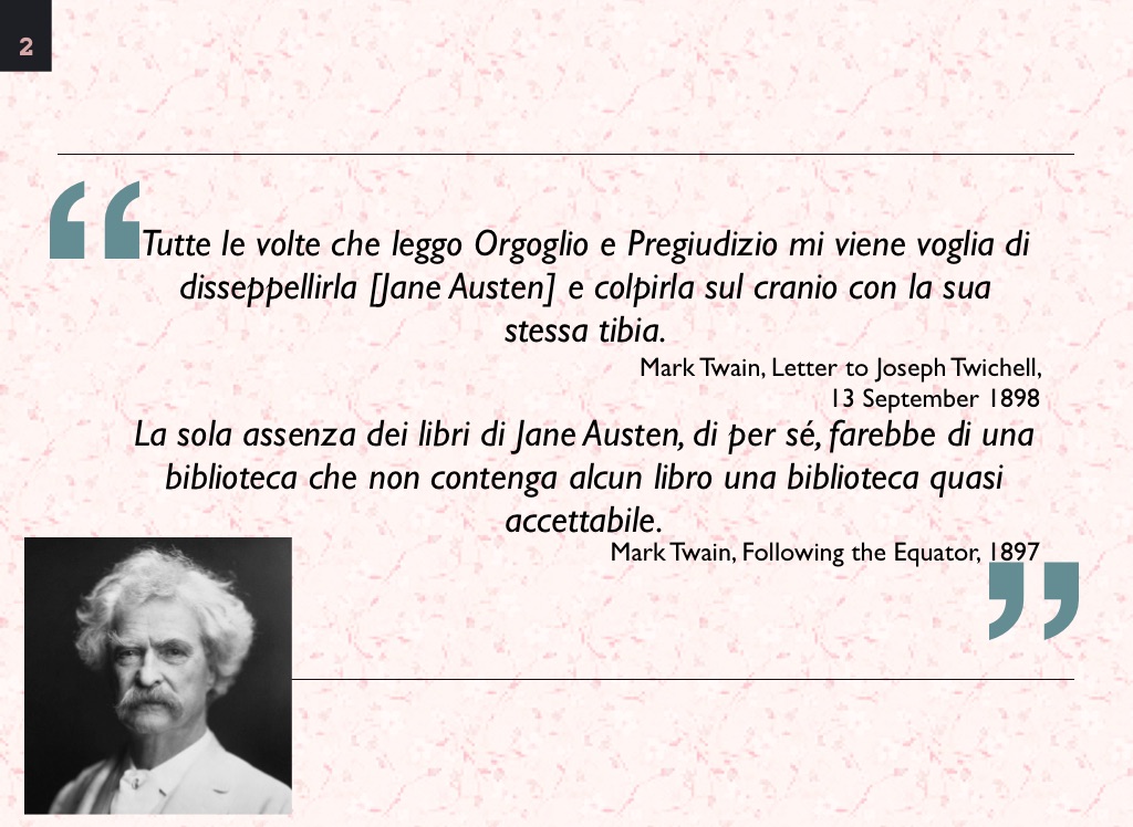 Tutte le volte che leggo Orgoglio e Pregiudizio mi viene voglia di disseppellirla [Jane Austen] e colpirla sul cranio con la sua stessa tibia.