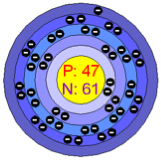 The number of protons in this element is 47. The number of neutrons are 61. The number of electrons is 47