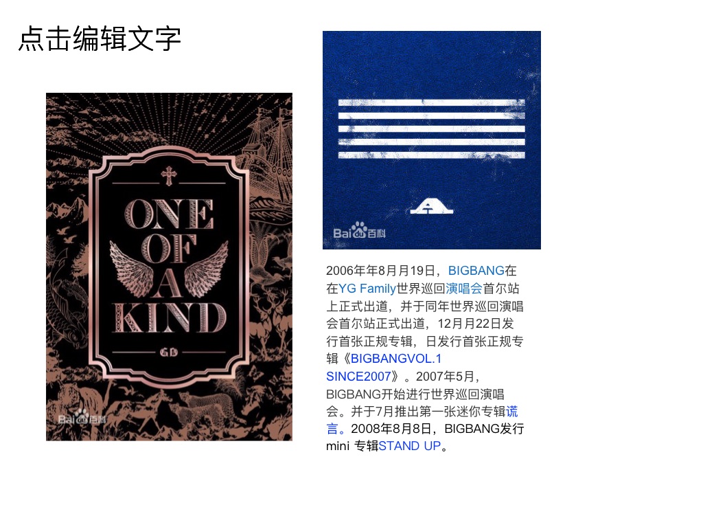 2006年年8月月19日,BIGBANG在在YG Family世界巡回演唱会首尔站上正式出道,并于同年世界巡回演唱会首尔站正式出道,12月月22日发行首张正规专辑,日发行首张正规专辑《BIGBANGVOL.1 SINCE2007》。2007年5月,BIGBANG开始进行世界巡回演唱会。并于7月推出第一张迷你专辑谎言。2008年8月8日,BIGBANG发行 mini 专辑STAND UP。