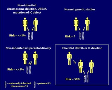 INHERITANCE - there are more than one way of receiving angleman syndrome. One way is not inherited which is are genetic changes that occur randomly during the formation of reproductive cells or in early embryonic development, and the inherited version occurs in the same stage but a mutation which is inherited.