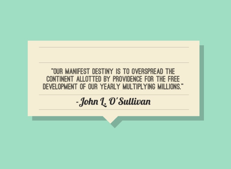 "Our manifest destiny is to overspread the continent allotted by Providence for the free development of our yearly multiplying millions."