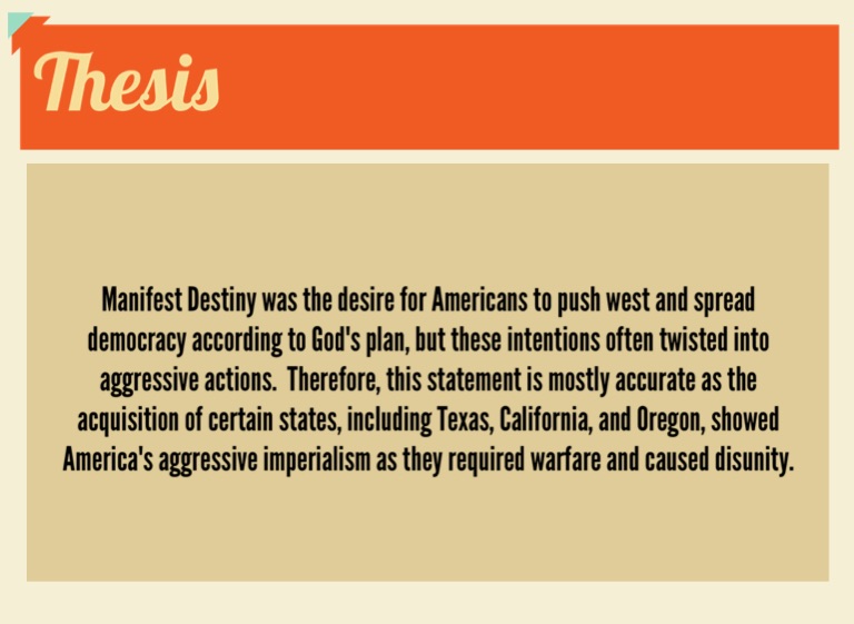 Manifest Destiny was the desire for Americans to push west and spread democracy according to God's plan, but these intentions often twisted into aggressive actions. Therefore, this statement is mostly accurate as the acquisition of certain states, including Texas, California, and Oregon, showed America's aggressive imperialism as they required warfare and caused disunity.