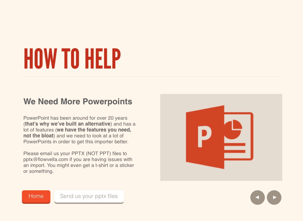 PowerPoint has been around for over 20 years (that’s why we’ve built an alternative) and has a lot of features (we have the features you need, not the bloat) and we need to look at a lot of PowerPoints in order to get this importer better.