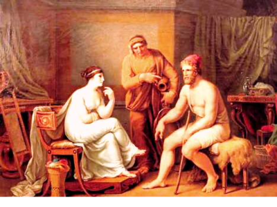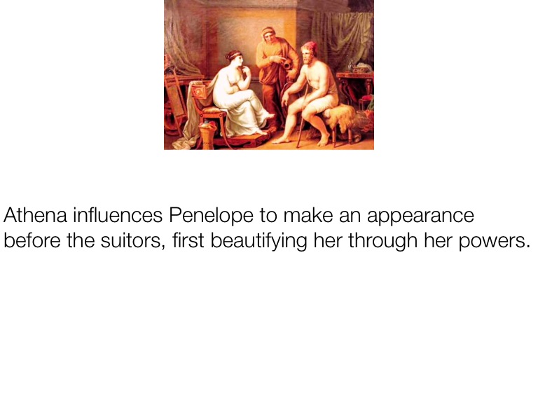 Athena influences Penelope to make an appearance before the suitors, first beautifying her through her powers.