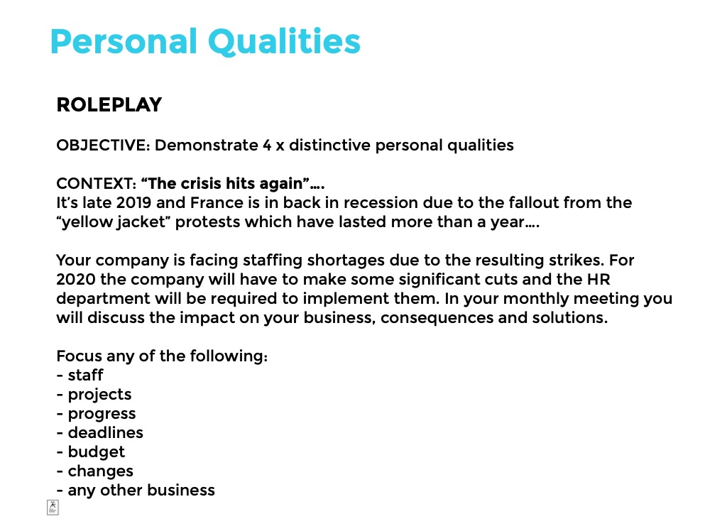 Your company is facing staffing shortages due to the resulting strikes. For 2020 the company will have to make some significant cuts and the HR department will be required to implement them. In your monthly meeting you will discuss the impact on your business, consequences and solutions.