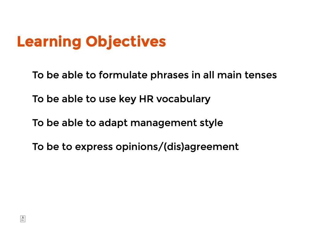To be able to use key HR vocabulary