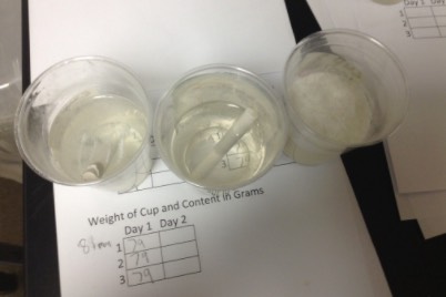 6. Put 1 piece of chalk in each cup.