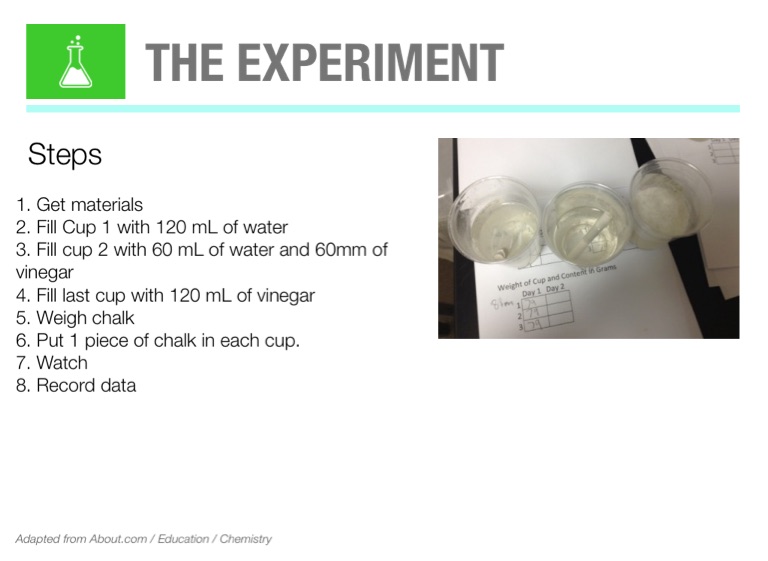 4. Fill last cup with 120 mL of vinegar