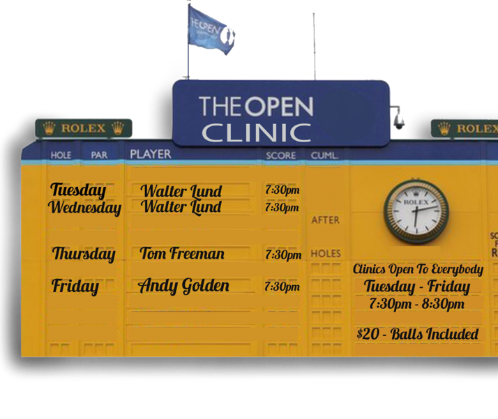 At the Academy we are proud to offer weekly golf clinics open to everybody on Tuesdays - Friday 52 weeks of the year. So matter when you need it, you can get that much needed golf fix on almost every day of the year. No booking necessary, just show up and join us on the path to total golf enlightenment! Check out our clinic schedule below. You can even coordinate to come when your favorite instructor is teaching.