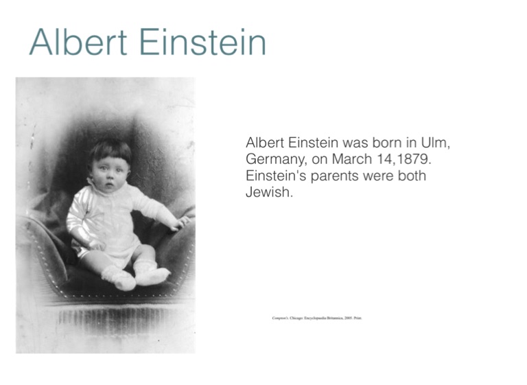 Albert Einstein was born in Ulm, Germany, on March 14,1879. Einstein's parents were both Jewish.
