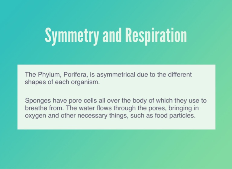 Sponges have pore cells all over the body of which they use to breathe from. The water flows through the pores, bringing in oxygen and other necessary things, such as food particles.