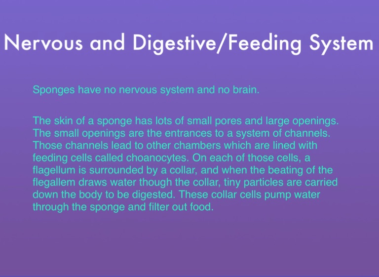Sponges have no nervous system and no brain.