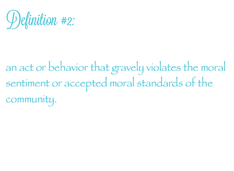 an act or behavior that gravely violates the moral sentiment or accepted moral standards of the community.
