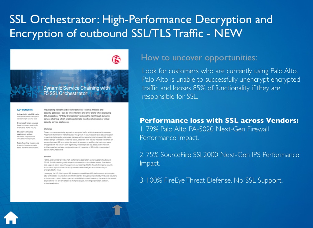 Look for customers who are currently using Palo Alto. Palo Alto is unable to successfully unencrypt encrypted traffic and looses 85% of functionality if they are responsible for SSL.