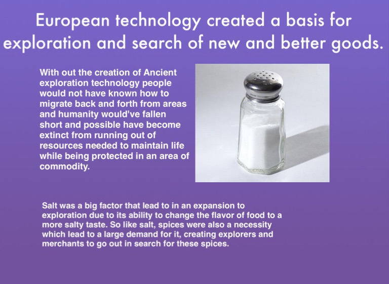 European technology created a basis for exploration and search of new and better goods.