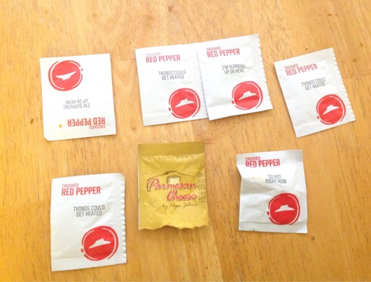 This is an example because the parmesan is an outcast of the red pepper flakes