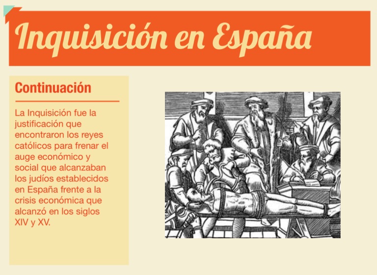 La Inquisición fue la justificación que encontraron los reyes católicos para frenar el auge económico y social que alcanzaban los judíos establecidos en España frente a la crisis económica que alcanzó en los siglos XIV y XV.