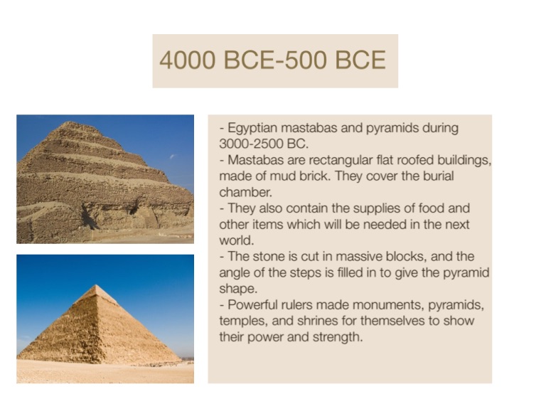 - Egyptian mastabas and pyramids during 3000-2500 BC.