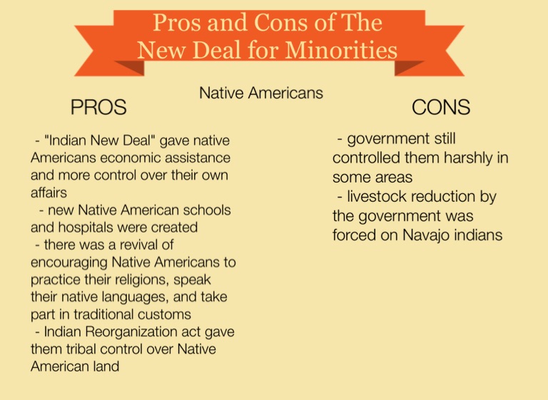 - "Indian New Deal" gave native Americans economic assistance and more control over their own affairs