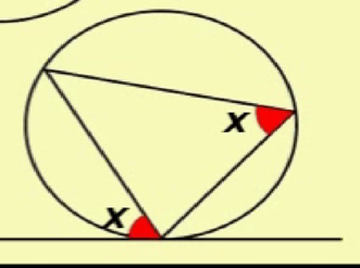 An angle on a tangent will a,ways equal an angle on a chord in a circle
