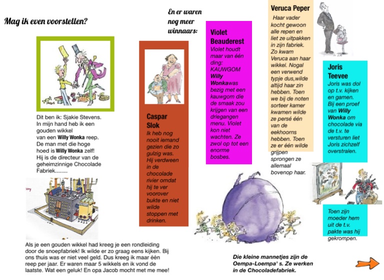 Als je een gouden wikkel had kreeg je een rondleiding door de snoepfabriek! Ik wilde er zo graag eens kijken. Bij ons thuis was er niet veel geld. Dus kreeg ik maar één reep per jaar. Er waren maar 5 wikkels en ik vond de laatste. Wat een geluk! En opa Jacob mocht met me mee!