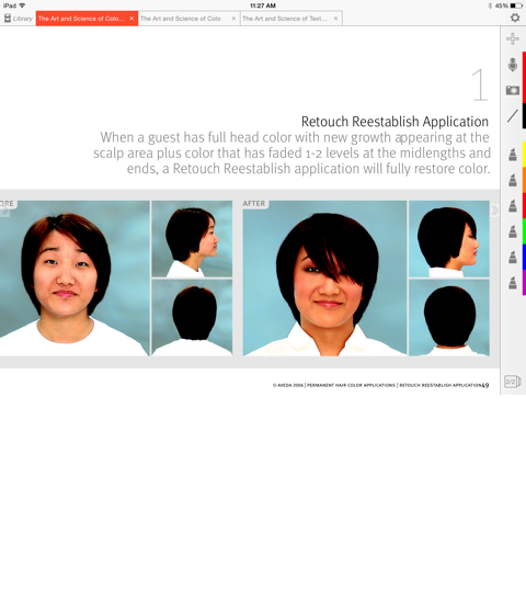 go back and check your applications through subsections to make sure hair is saturated. apply more color to any dried out product. to reastablish color on the midlengths and ends if color has faded 2 levels, mix enough formula to cover hair that is left. apply more protective creme and pace foil over nape. apply formula to midlenghts overlapping previous color from the other formula.