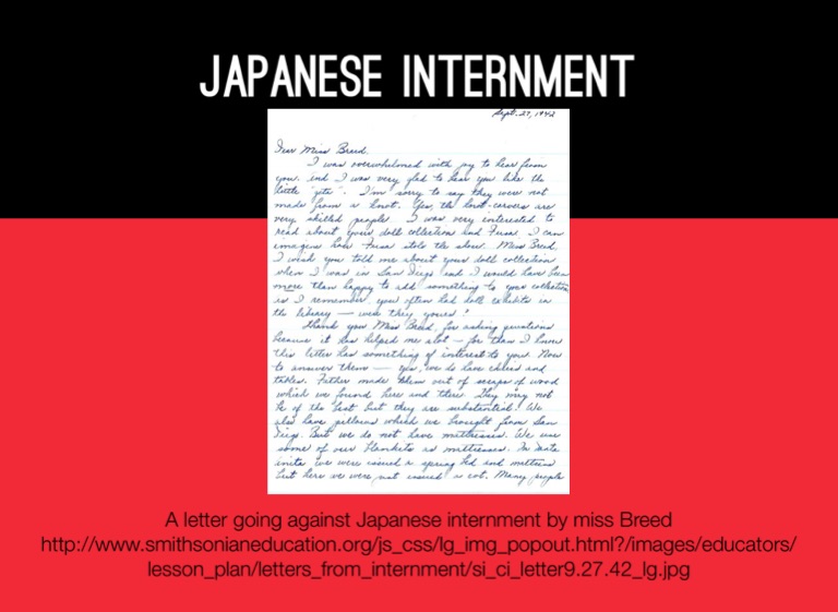 A letter going against Japanese internment by miss Breed