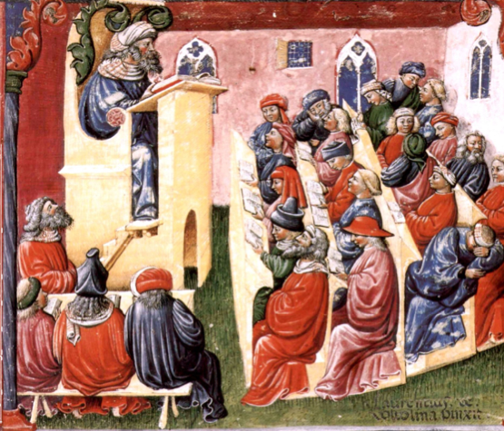 Questo dipinto del 1350 riproduce una lezione all’Università, che ricorda molto la scuola di oggi per il clima della classe. Sembra che i secoli, lo sviluppo tecnologico, la ricerca pedagogica, la sperimentazione didattica non abbiano cambiato molto. Come è possibile?