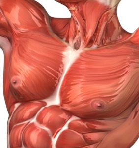 This is the pectoralis muscle also known as the pecs It makes up the bulk of the chest muscles in the male and lies under the breasts in the female. Underneath the pectoralis major is the pectoralis minor, a thin, triangular muscle it helps In sports as well as bodybuilding.
