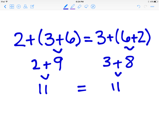 Associative Property of Addition is when you have a set of factors and a parenthesis pair and you regroup the factors and they come out with the same sum.