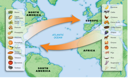 The trading of crops between Europe and North America allowed for a bigger diversity of food for both cultures. This also brought animals that allowed for new modes of work and transportation to the Native Americans.
