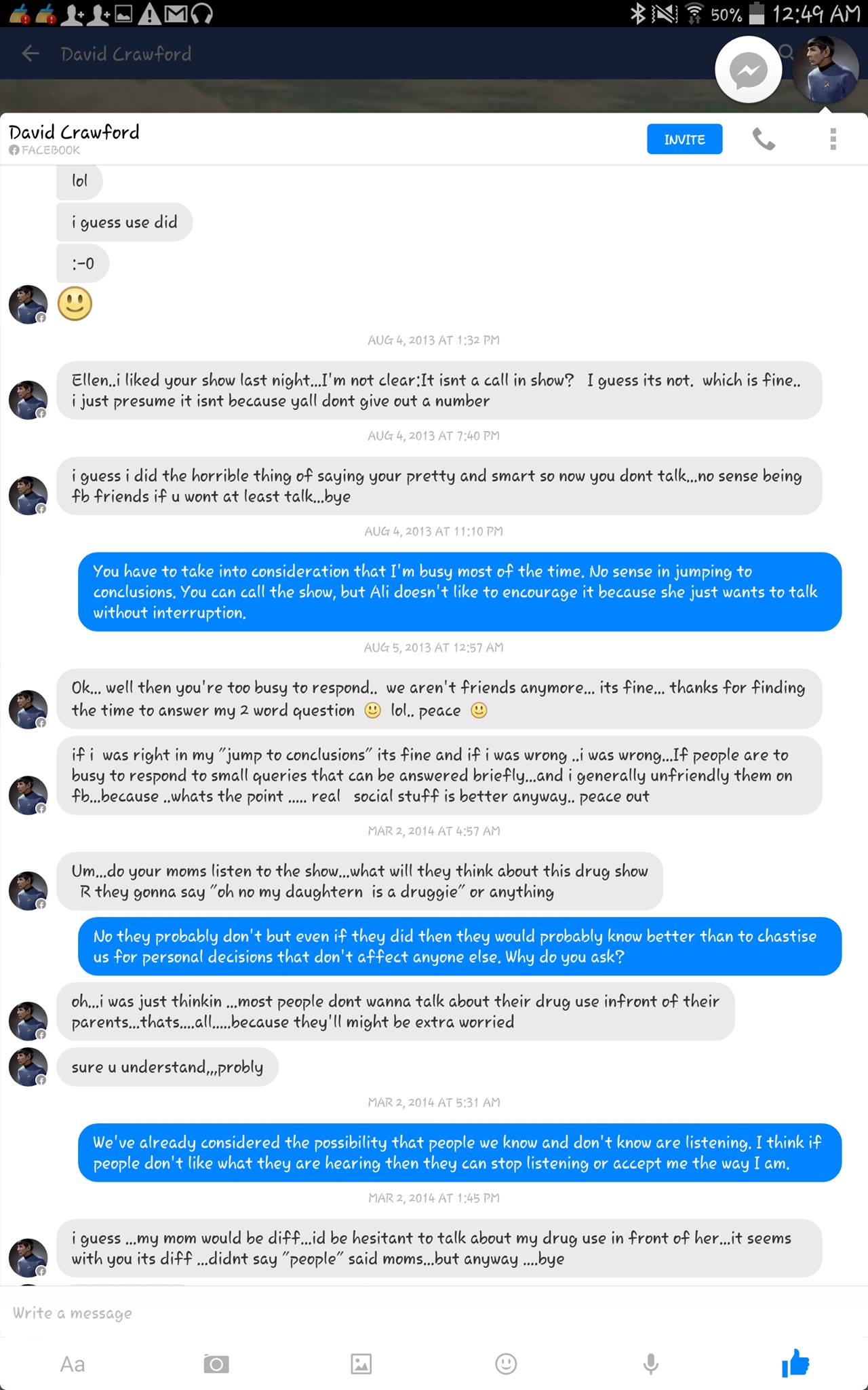 Ellen says he’s been negative towards her in the past and he responds with excuses and well you are wrong. When she doesn’t respond, he try to guilt her with Ok, fine, you don’t want to talk? Whatever.