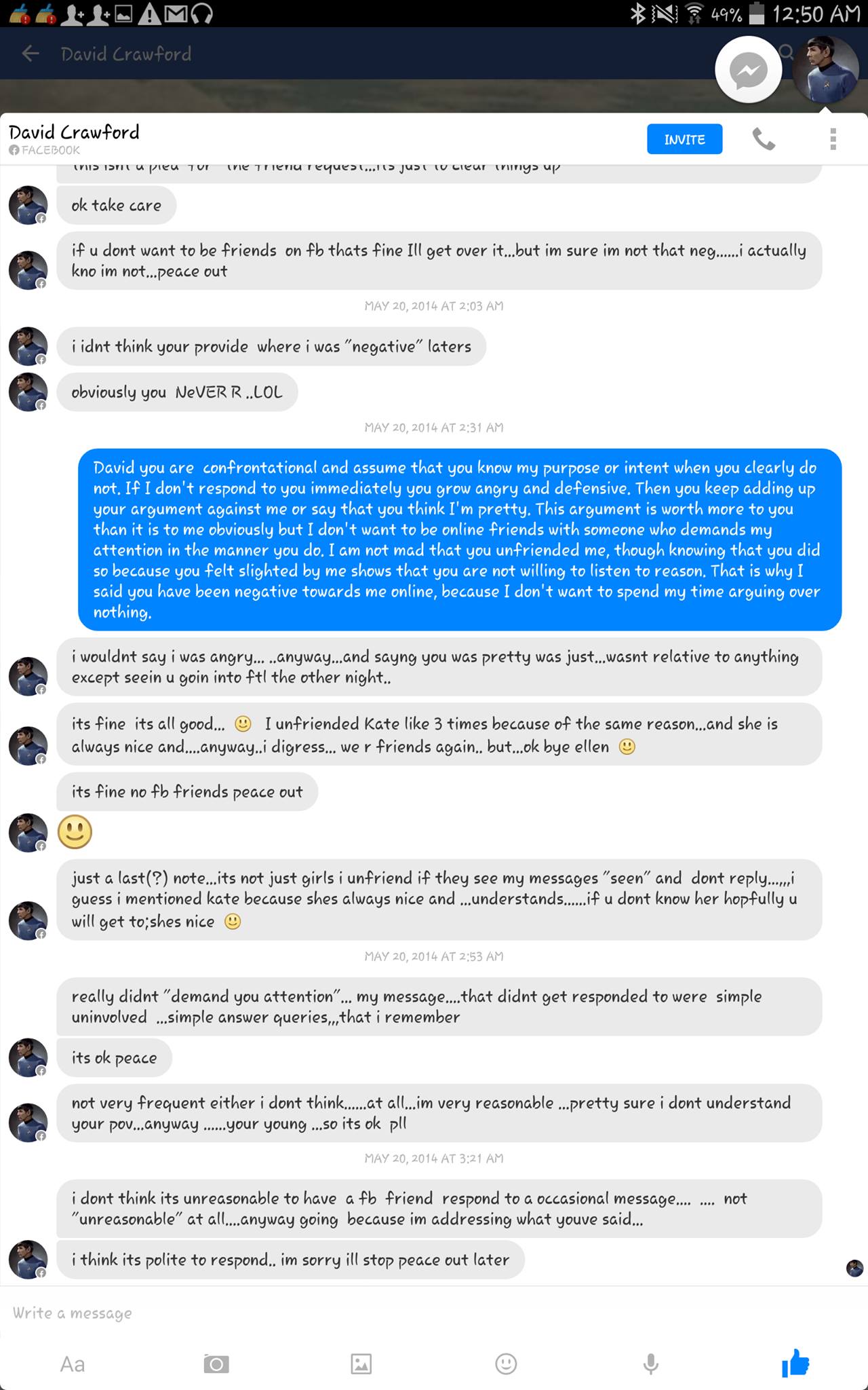 Ellen says I don’t know want to be online friends with someone who demands my attention. He continues to guilt her.