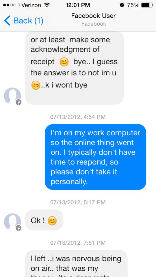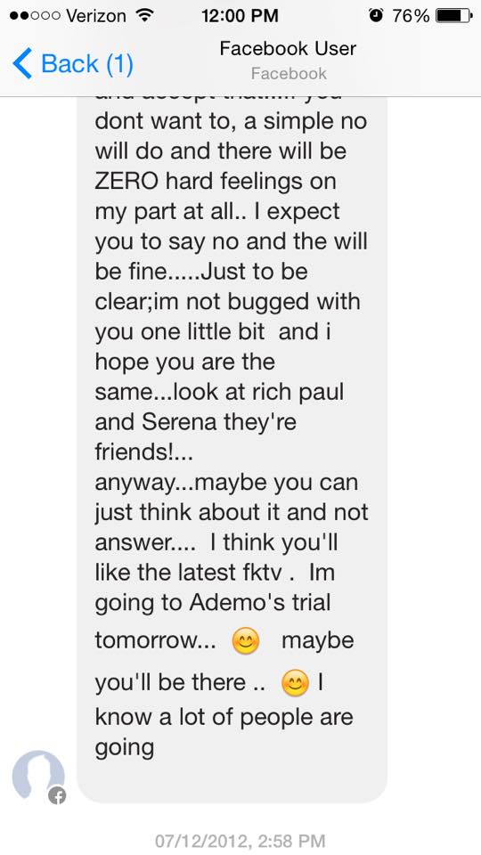 When that happened, he started emailing her and hanging out by the window of the LRN Studio. He was confronted by Andrew, her boyfriend at the time and he didn’t see the problem.