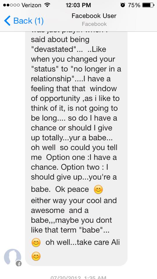 He pestered Ali for months by asking for a date over and over and over again, trying to convince her and she was quite clear that she wasn’t interested.