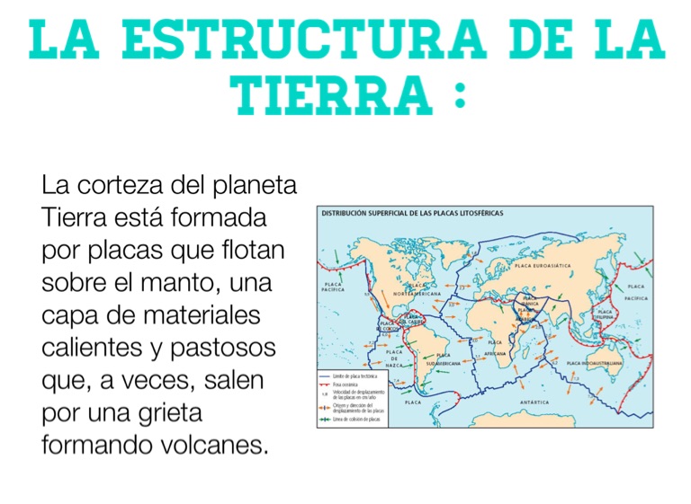 La corteza del planeta Tierra está formada por placas que flotan sobre el manto, una capa de materiales calientes y pastosos que, a veces, salen por una grieta formando volcanes.
