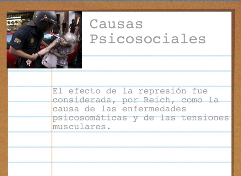 El efecto de la represión fue considerada, por Reich, como la causa de las enfermedades psicosomáticas y de las tensiones musculares.