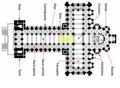 - Lugar donde se juntan los brazos: crucero (se cubría con una torre).