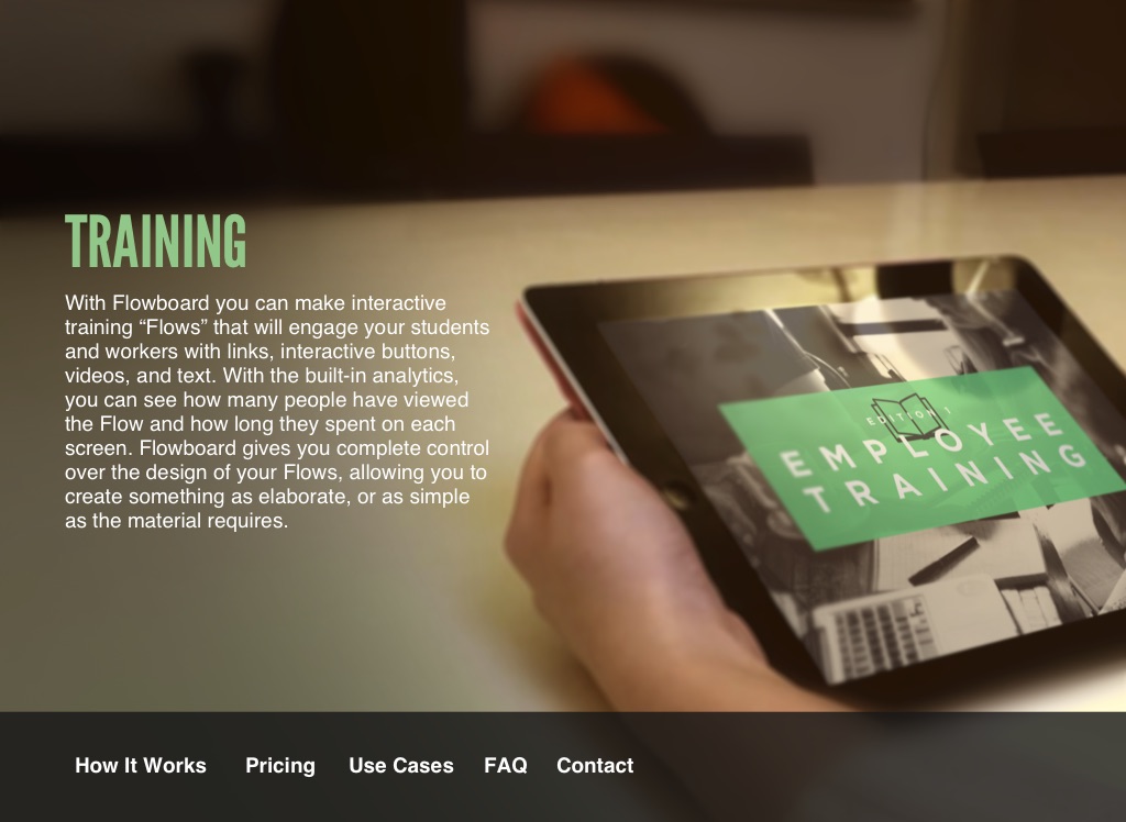 With Flowboard you can make interactive training “Flows” that will engage your students and workers with links, interactive buttons, videos, and text. With the built-in analytics, you can see how many people have viewed the Flow and how long they spent on each screen. Flowboard gives you complete control over the design of your Flows, allowing you to create something as elaborate, or as simple as the material requires.