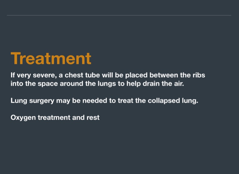 If very severe, a chest tube will be placed between the ribs into the space around the lungs to help drain the air.