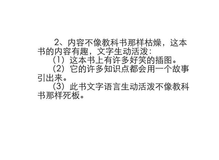 (3)此书文字语言生动活泼不像教科书那样死板。