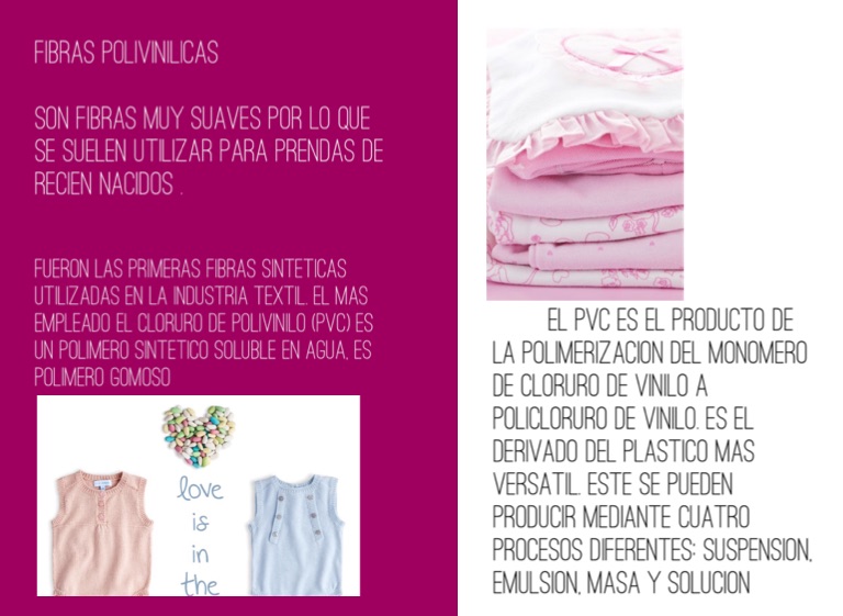 Fueron las primeras fibras sinteticas utilizadas en la industria textil. El mas empleado el cloruro de polivinilo (pvc) es un polimero sintetico soluble en agua, es polimero gomoso