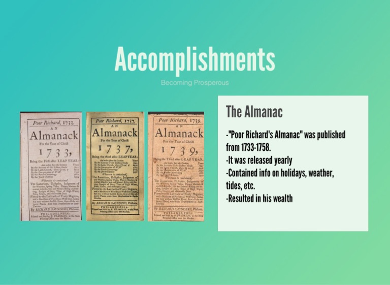 -"Poor Richard's Almanac" was published from 1733-1758.