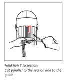 • Hold the hair T to the subsection parting.