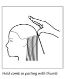 • Place an end of the comb in the parting of the