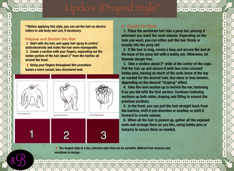 ❗️The draped style is a fun, informal style that can be variedfor different hair textures and variations in design.