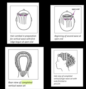 waves that flow vertically across the front and sides of the head, forming a pompadour. These waves will meet in backor may be set in a combination pattern.