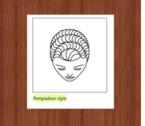 A pompadour is a style that is not parted and is worn off theface. The set shown here has waves that become horizontal from a circular pattern in the crown.