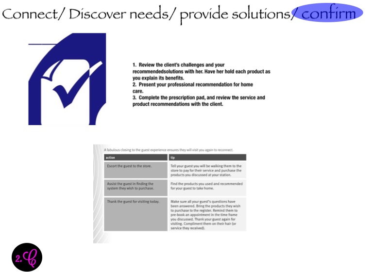 1. Review the client’s challenges and your recommendedsolutions with her. Have her hold each product as you explain its benefits.