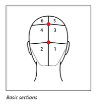 Section the hair into the six basic section